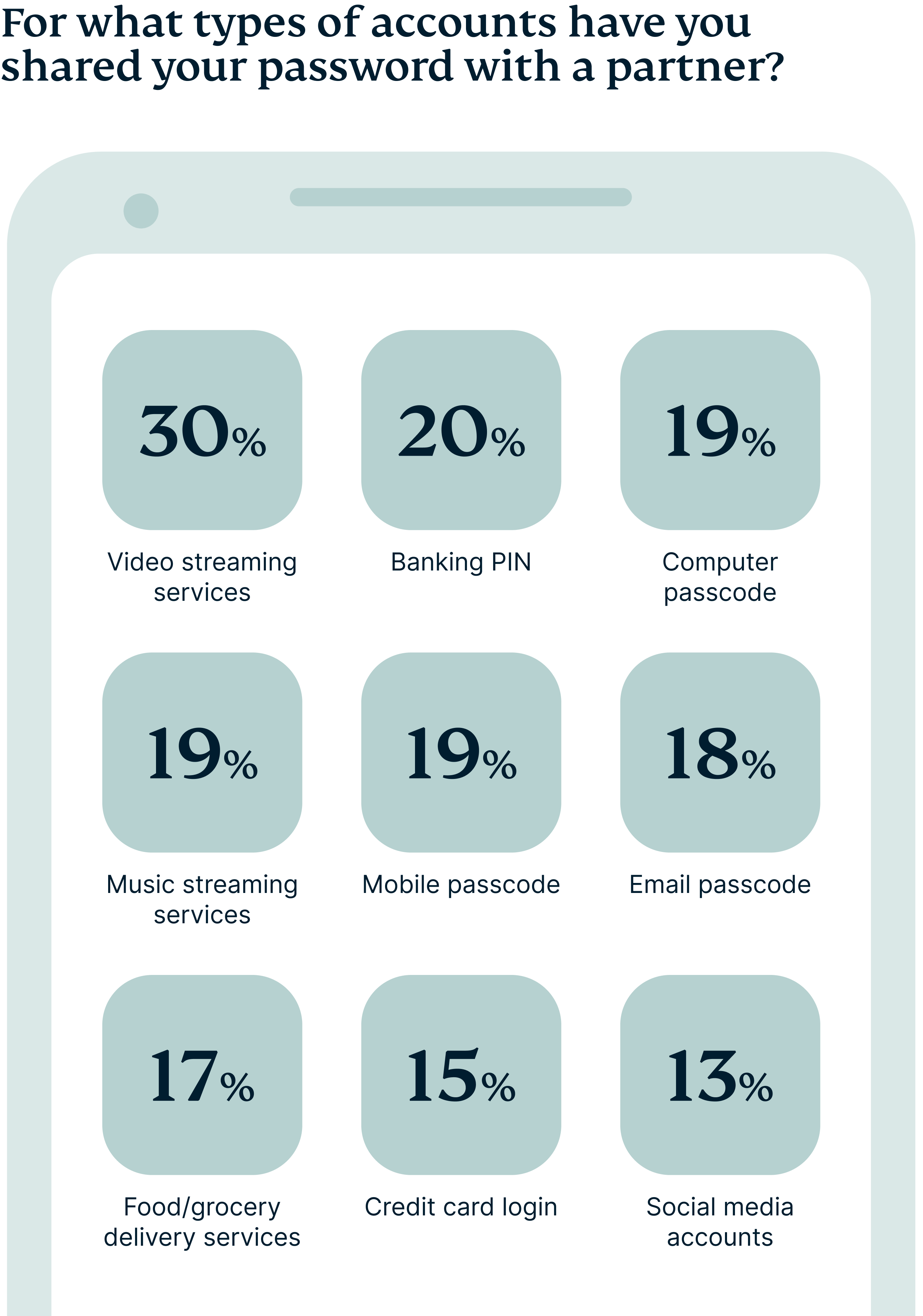 Password sharing between couples is incredibly common, with 81% of Americans admitting that they’ve shared a password with their partner.