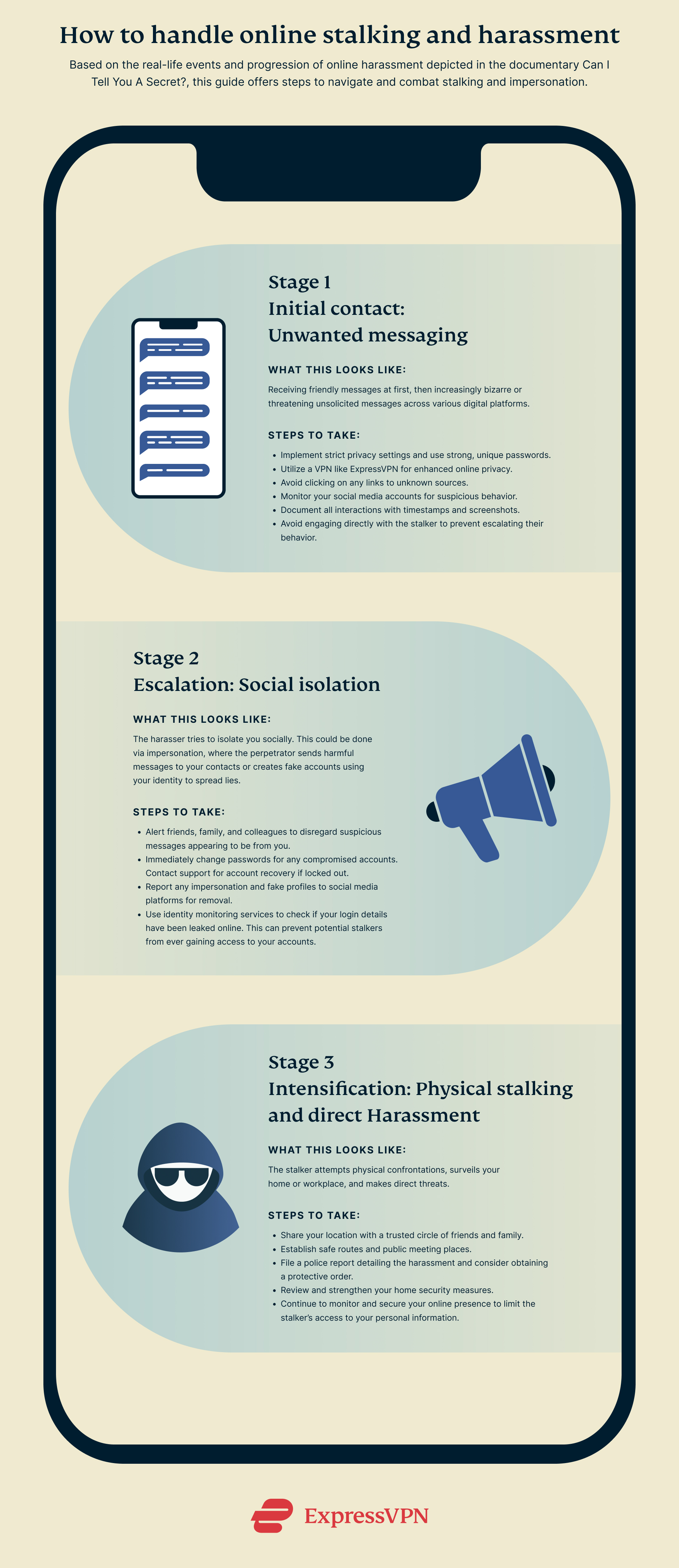 Als je ongewild online wordt lastiggevallen, lees dan hier hoe je je staande kunt houden en jezelf in elke fase kunt beschermen: