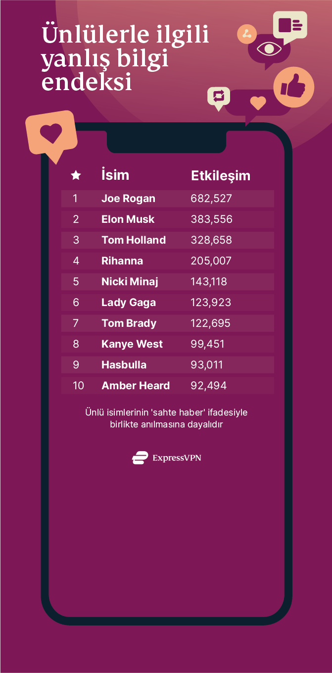 2022'de ‘sahte haber’lere en çok konu olan 20 ünlü